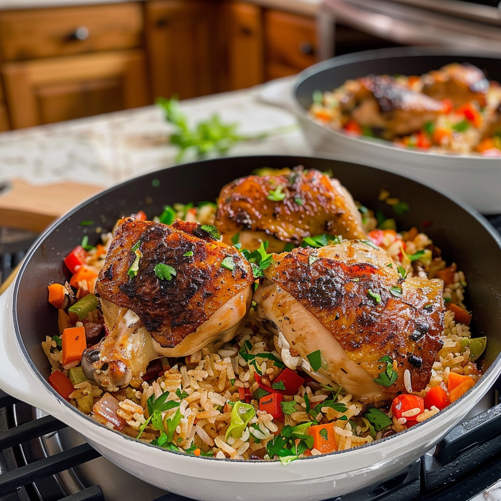 This one-pot wonder features tender chicken thighs and fluffy rice, all infused with aromatic spices for a comforting meal that’s perfect any night.