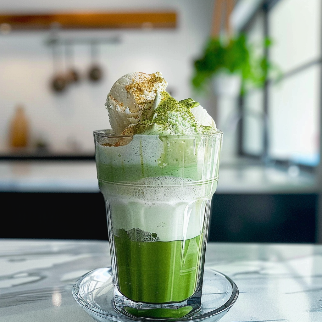 A Matcha Ice Cream Float combines creamy ice cream with earthy matcha tea for a delightful dessert.